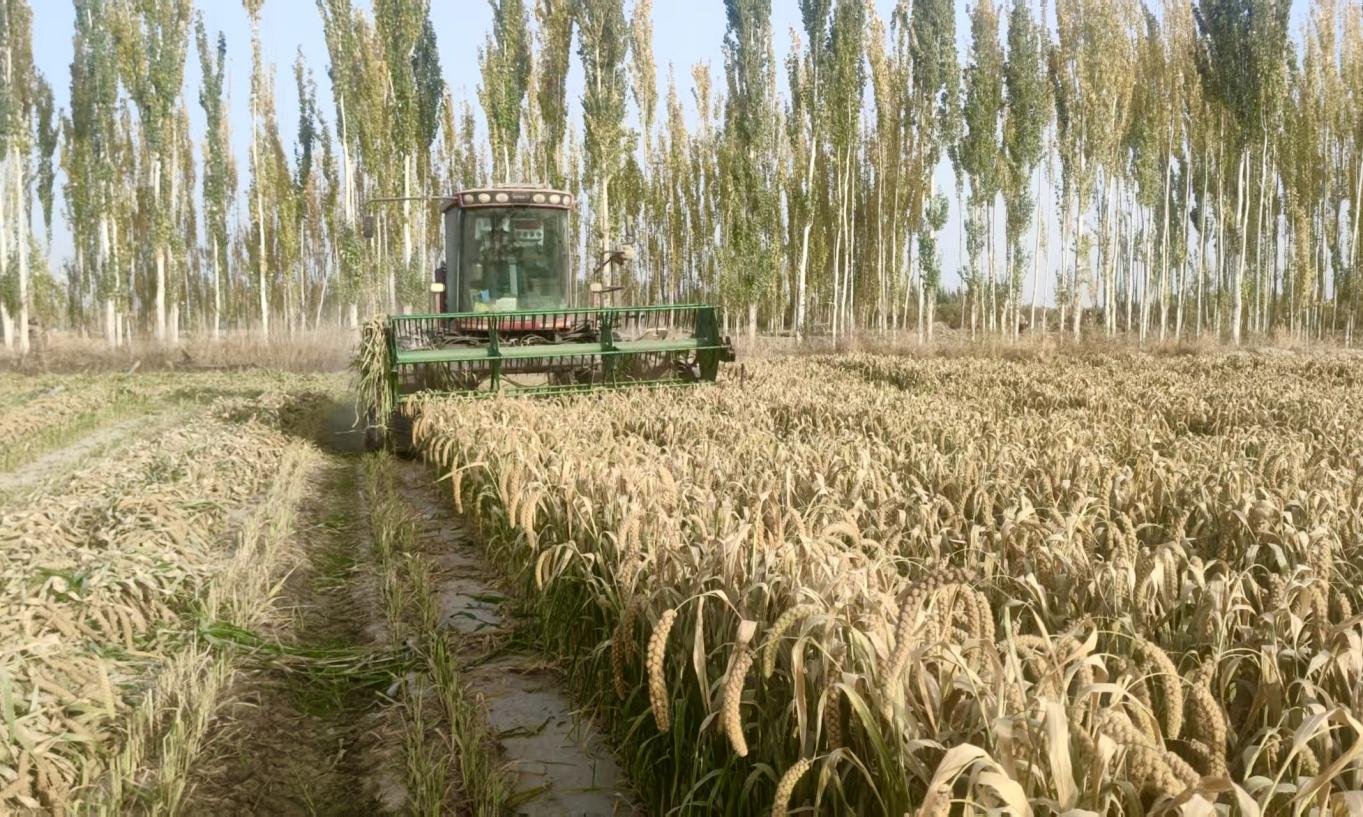 金秋送爽,硕果盈枝。10月28日,在新疆库车市玉奇吾斯塘乡杭甫巴格村,1200亩小米迎来丰收季。放眼望去,广袤田野披上金色外衣,成片的谷穗低垂,在阳光照耀下熠熠生辉。微风掠过,稻浪起伏,仿佛大地铺展的金色绸缎,处处洋溢着丰收的喜悦。